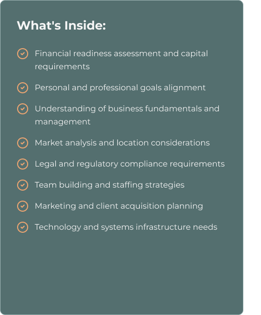Clinical skills and business ownership are two completely different things. Before you commit to either path, it helps to take an honest look at where you stand financially, operationally, and personally. That’s exactly what our free readiness checklist is designed to help you do.